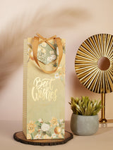 Elevate your gift-giving with the ideal bottle bag for wine, standard whiskey, or liquor bottles. The exquisite design features gold foiled elements, creating a truly captivating experience. The handles are adorned with a fine herringbone pattern ribbon, adding an extra touch of sophistication.