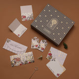 Indulge in the ultimate gifting experience with the Quad Box, our most luxurious stationery set, crafted for those who desire nothing less than perfection. Featuring four exquisite elements—Money Envelopes, Notecards with Envelopes , Gift Tags, and Fold Cards—this collection offers a complete and refined stationery ensemble. Available insets of 10, 15, or 25,the Quad Box is perfect for celebrating life’s grandest moments, from weddings to festive occasions, all beautifully housed in a stunning handcrafted gift box.