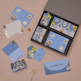 Money Envelope 7.25”x3.5” |Notecards 5.5”x4” |Gift Tags 4"x2.5" | Fold Cards 4"x5.5" when opened, 4”x2.75” when folded | Gift Box 10.75”x9.25”x2.25” inches
