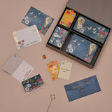 Money Envelope 7.25”x3.5” |Notecards 5.5”x4” |Gift Tags 4"x2.5" | Fold Cards 4"x5.5" when opened, 4”x2.75” when folded | Gift Box 10.75”x9.25”x2.25” inches