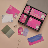 Indulge in the ultimate gifting experience with the Quad Box, our most luxurious stationery set, crafted for those who desire nothing less than perfection. Featuring four exquisite elements—Money Envelopes, Notecards with Envelopes , Gift Tags, and Fold Cards—this collection offers a complete and refined stationery ensemble. Available insets of 10, 15, or 25,the Quad Box is perfect for celebrating life’s grandest moments, from weddings to festive occasions, all beautifully housed in a stunning handcrafted gift box.