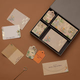 Money Envelope 7.25”x3.5” |Notecards 5.5”x4” |Gift Tags 4"x2.5" | Fold Cards 4"x5.5" when opened, 4”x2.75” when folded | Gift Box 10.75”x9.25”x2.25” inches