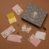 Indulge in the ultimate gifting experience with the Quad Box, our most luxurious stationery set, crafted for those who desire nothing less than perfection. Featuring four exquisite elements—Money Envelopes, Notecards with Envelopes , Gift Tags, and Fold Cards—this collection offers a complete and refined stationery ensemble. Available insets of 10, 15, or 25,the Quad Box is perfect for celebrating life’s grandest moments, from weddings to festive occasions, all beautifully housed in a stunning handcrafted gift box.
